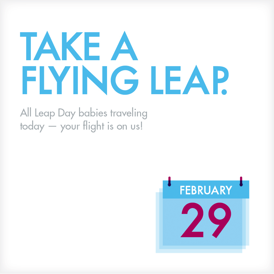Read ‘em and LEAP! If your birthday is on 2/29 and you’re traveling with JetBlue today, your flight is on us! #LeapDay