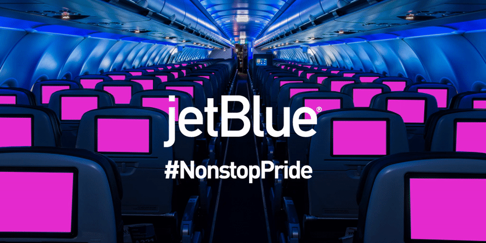 Red, orange, yellow, green, JETBLUE, indigo, violet. #NonstopPride